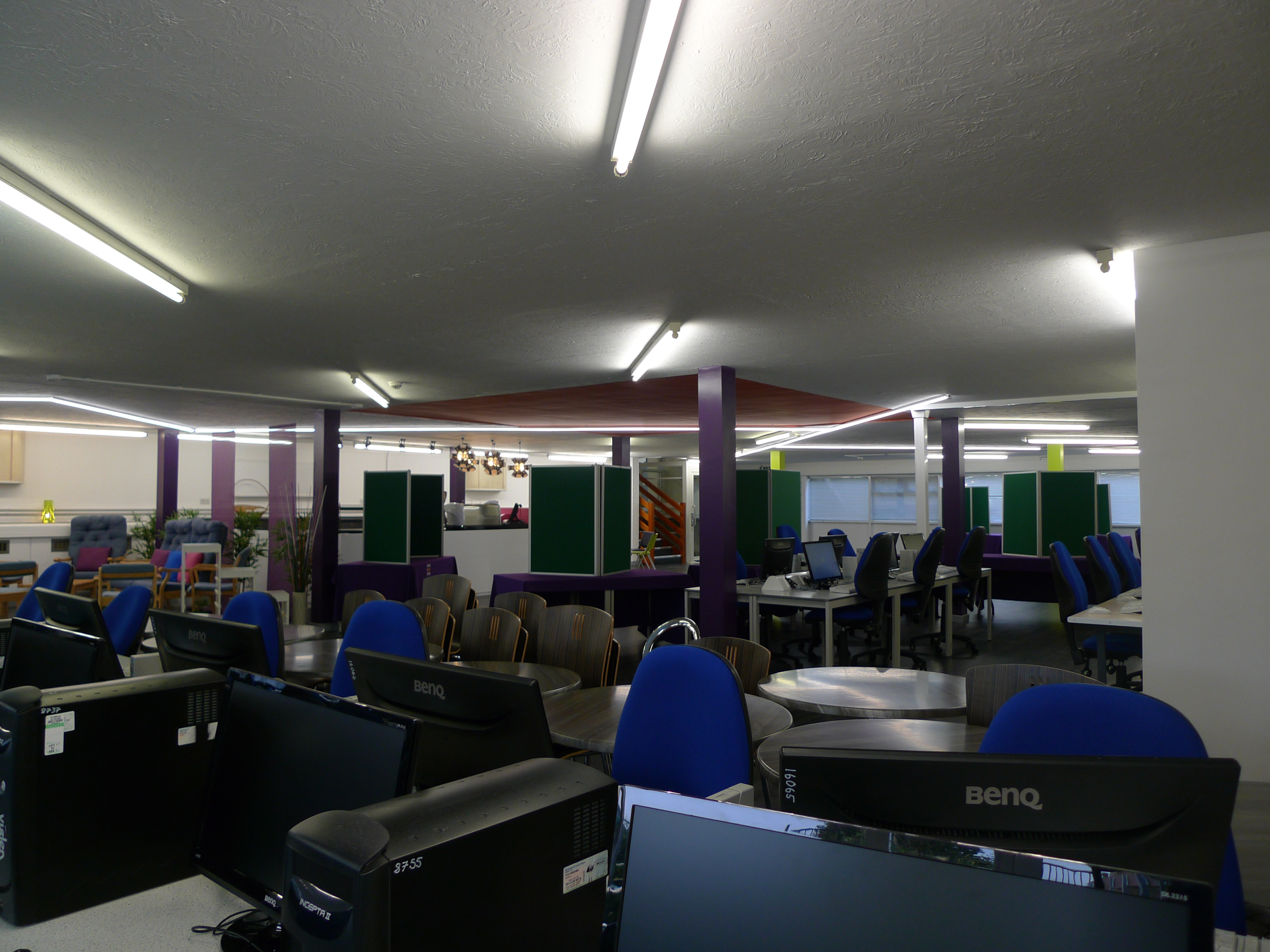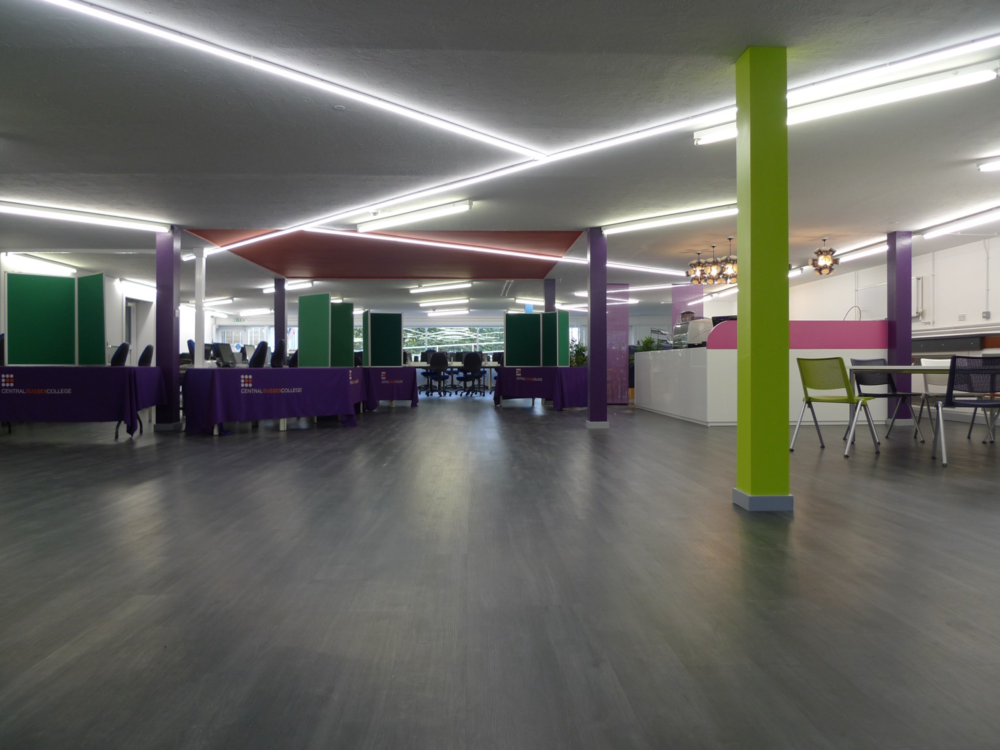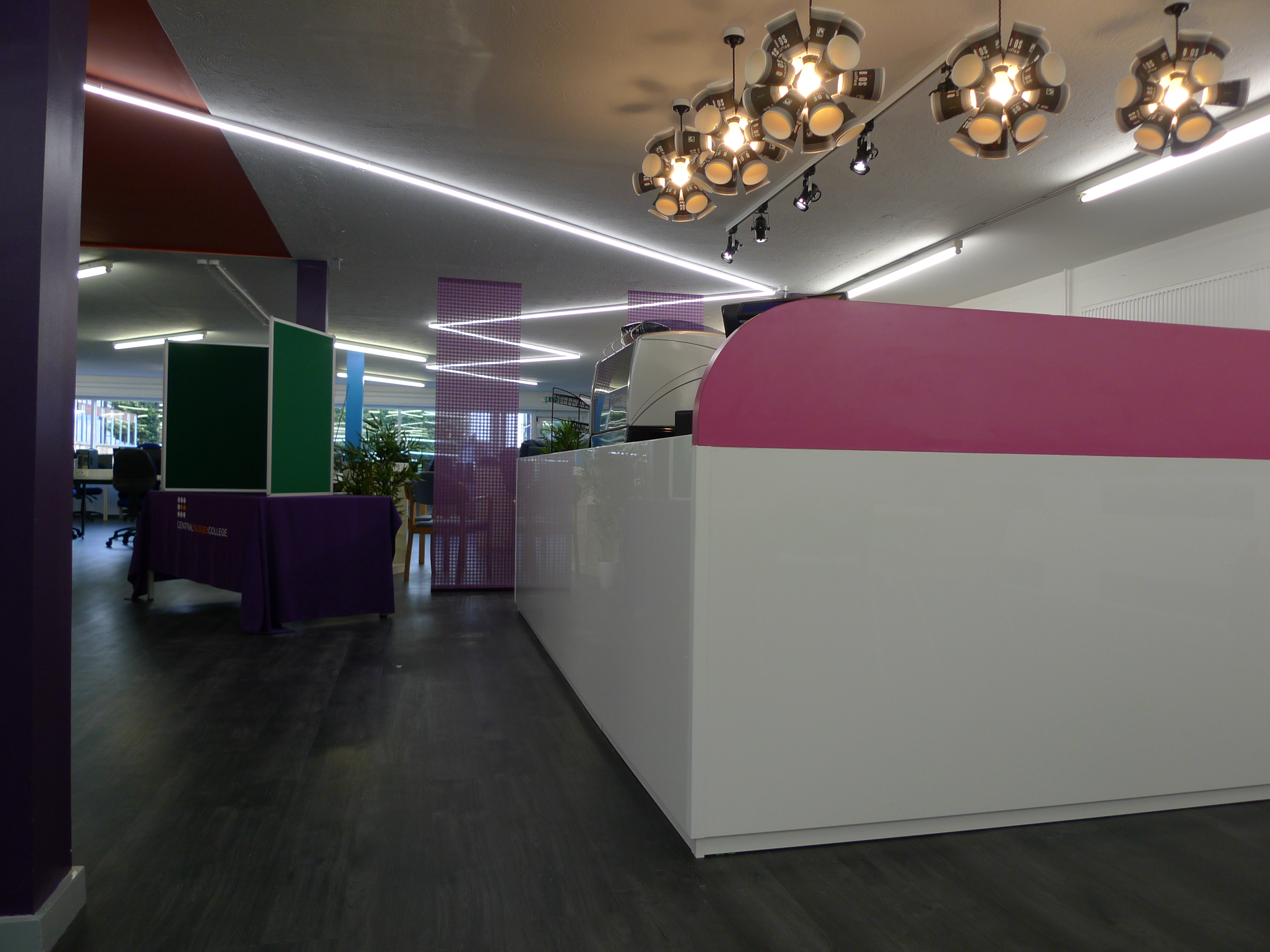 Brief: Design a lighting scheme with new and existing lighting for new College breakout area and coffee shop.